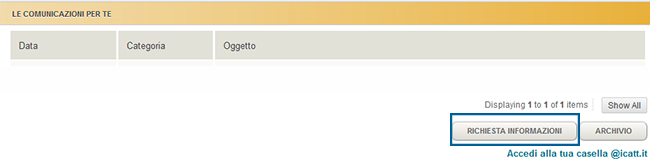 Per chiarimenti o problemi relativi ai corsi Blackboard è possibile inoltrare la propria segnalazione tramite la funzione "Richiesta informazioni" presente nella Home Page di iCatt, all'interno del box "Le comunicazioni per te".